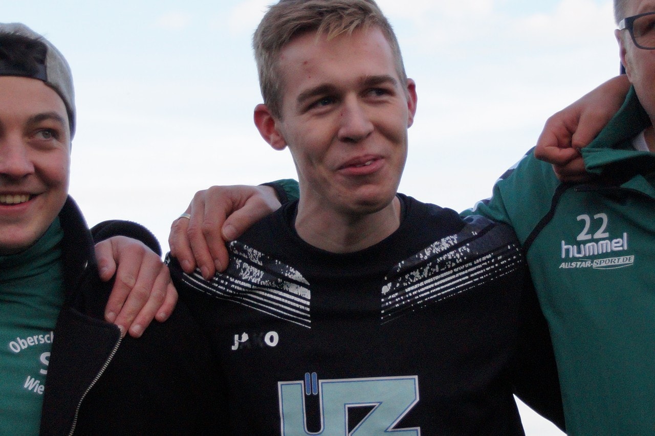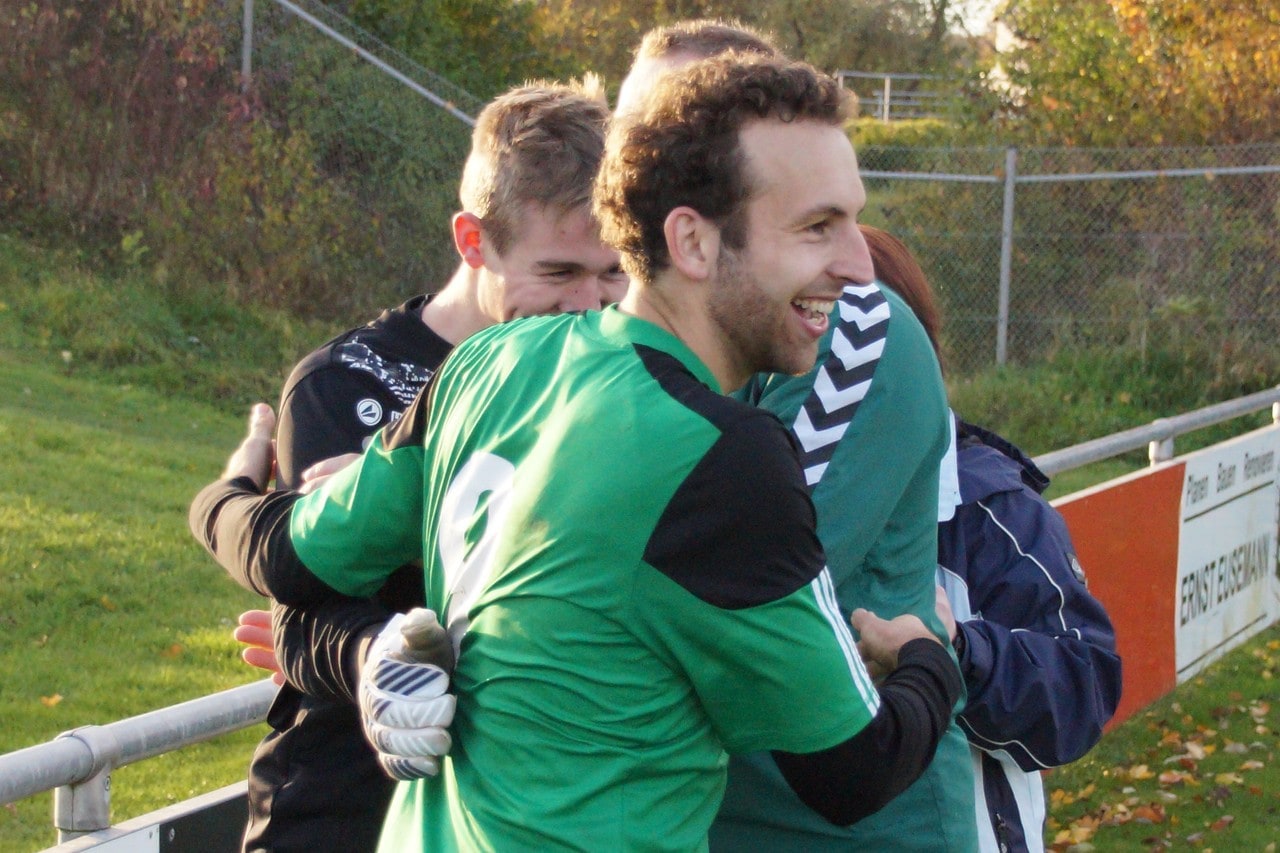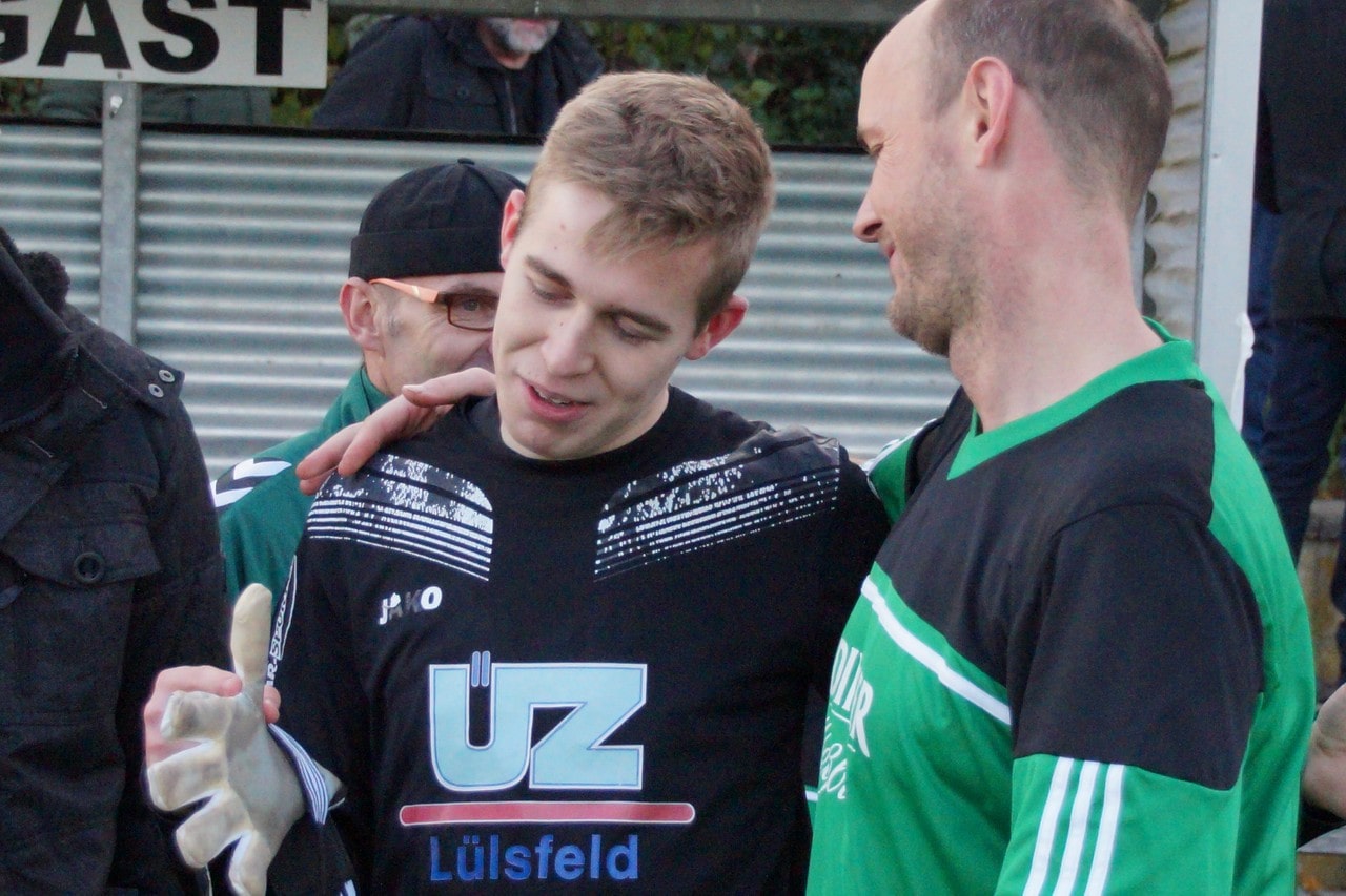 Mann des Tages: SG – Torwart Felix Wilms zeigt seine ganze Klasse und hielt gleich 2 TSV-Elfer – die Entscheidung – überglücklich – Verdient steht die SG Oberschwarzach / Wiebelsberg zum zweiten Male im Totopokalfinale (wahrscheinlich am 1. Mai 2018 , gegen TSV Forst , die sich ebensfalls im Elfmeterschießen gegen FC Geesdorf durchsetzten)
